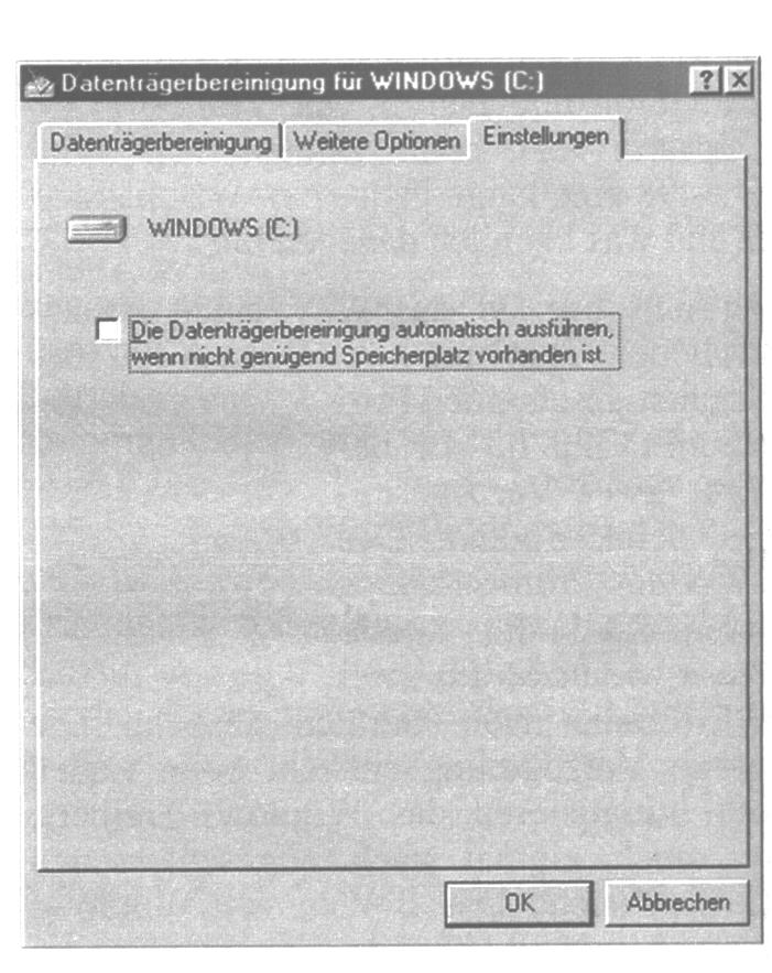 Datenträgerbereinigung auf. Wählen Sie dort den Reiter